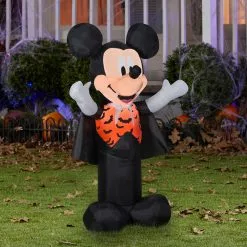 Gemmy Airblown Inflatable Mickey Mouse Vampire in Orange Bat Vest, Self-Inflates, G-220311